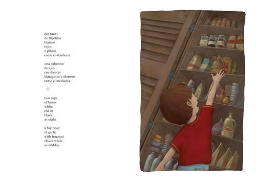 Simply written, yet full of vivid imagery, Jorge Argueta’s verse and Rafael Yockteng’s animated illustrations make preparing bean soup a fun, almost magical experience. This book is a great family recipe/poem for those who already love bean soup — it is a comfort food for many — and for those who are looking for a delicious new healthy food.