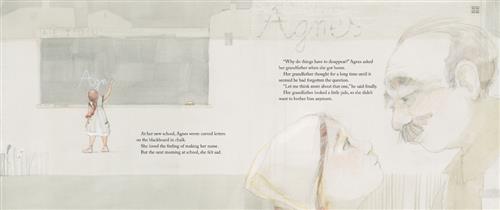 One day, Agnes’s family moves to a house in a big city. The straight horizon and wheat fields are gone, but Agnes continues to draw what she sees and feels around her. No one except her grandfather understands what she is trying to capture — not her mother, who asks, “Where are you, Agnes?” when she sees her daughter engrossed in her drawing; nor her siblings, who think her art is ugly. Still, Agnes keeps trying to capture what she sees inside her mind.